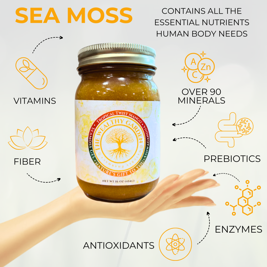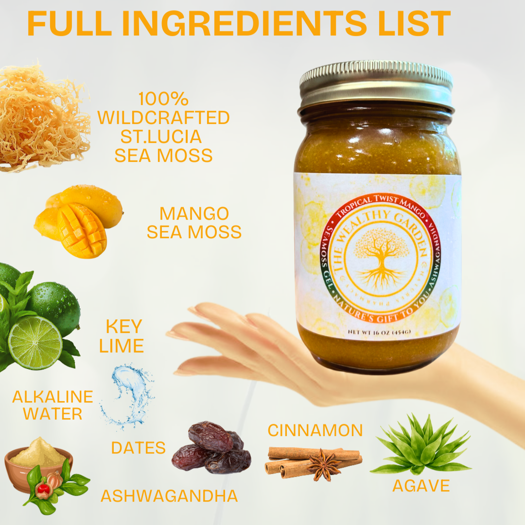 Experience the naturally sweet and refreshing taste of Our Mango & PLUS Sea Moss Gel a smooth blend of wildcrafted sea moss and ripe Mangos Crafted in small batches, this fruit-infused gel is perfect for adding to smoothies, teas, or enjoying by the spoonful. With a soft texture and real fruit flavor, it’s a convenient way to support your daily wellness routine the natural way.